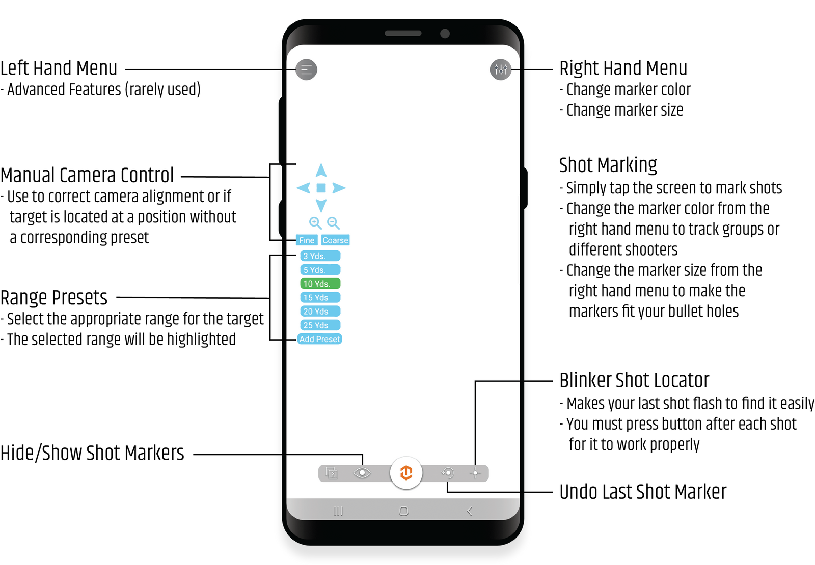 - Range: 3 Yards to 25 Yards